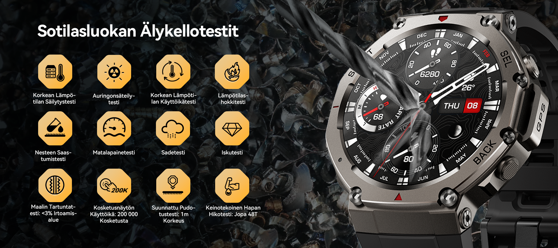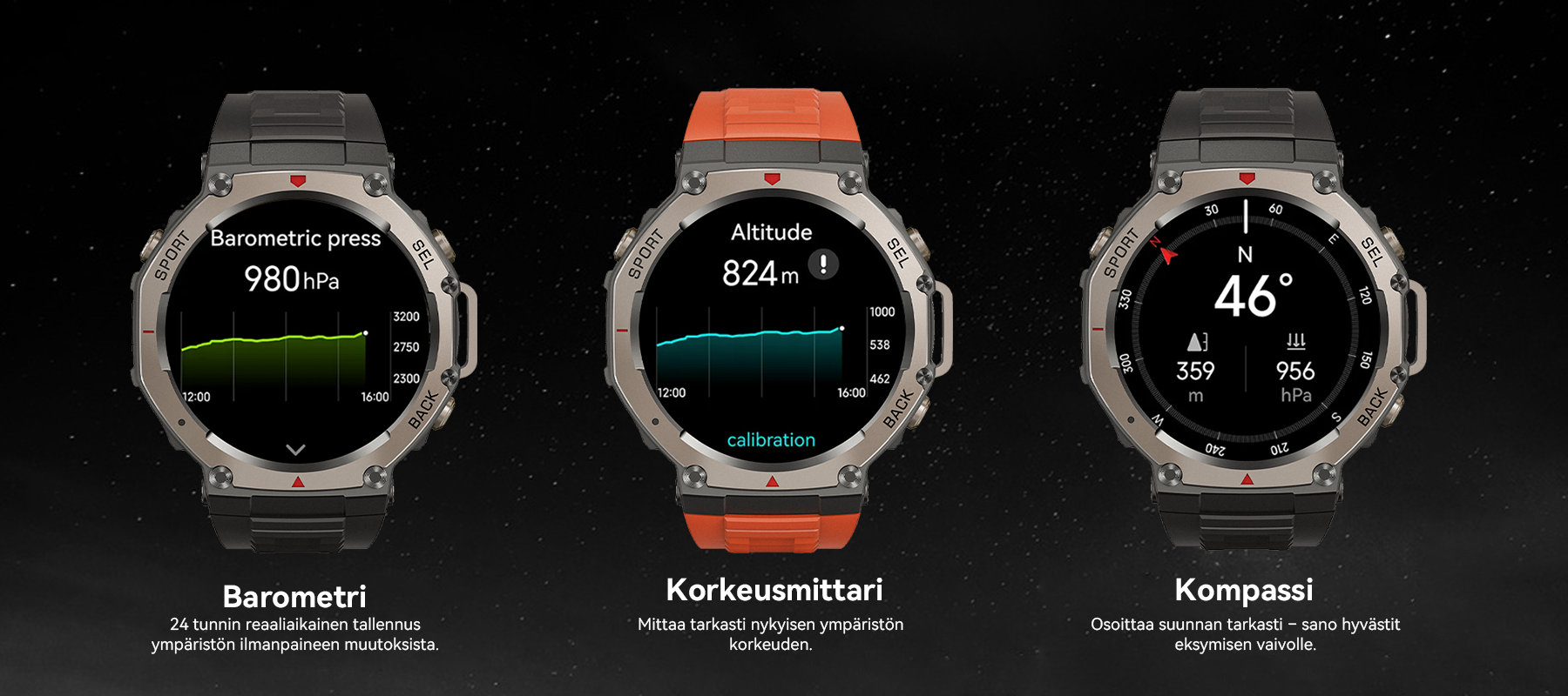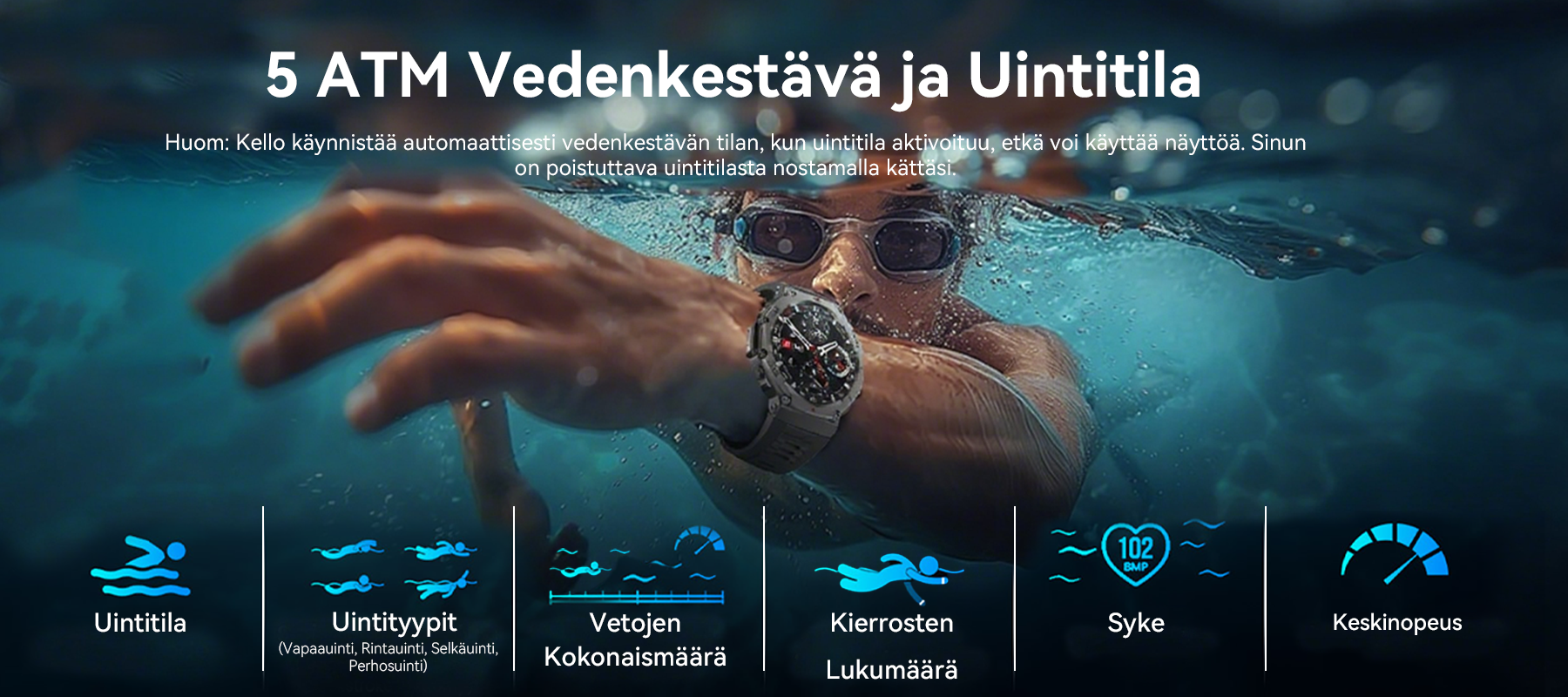- Kattava urheilun ja terveyden seuranta – Monitoimianturit seuraavat tarkasti yli 170 urheilulajia ja terveystietoa.